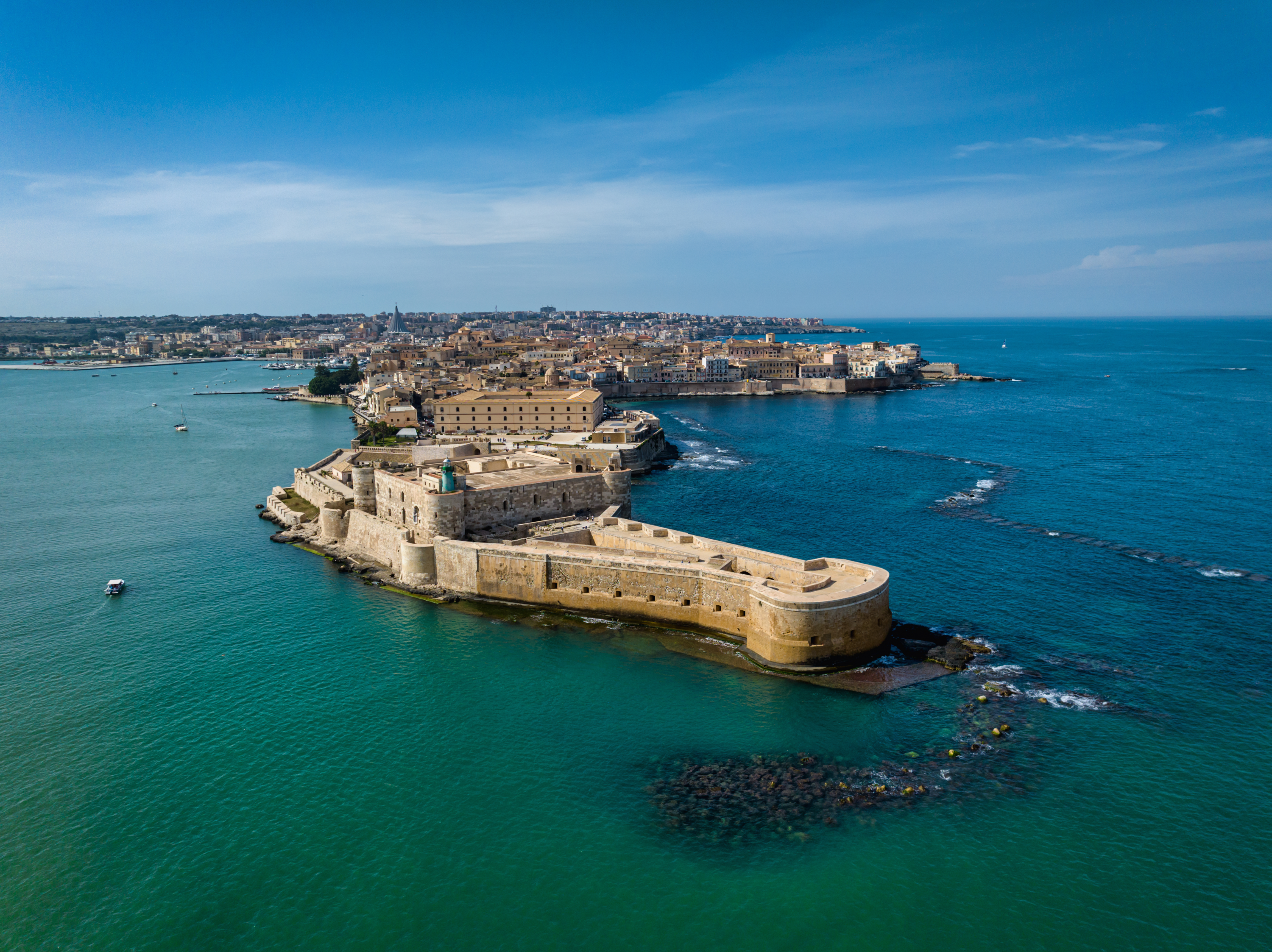 As we reach the tip of the peninsula, the Fountain of Arethusa sits shrouded in myth and mystery. It's unusual to find a freshwater spring so close to the sea, and even more unusual to find the papyrus plants that grow there. A narrow promenade, lined with cafes and trattorias offering sea views, leads to the 13th-century fortress that stands guard against any approaching threat.