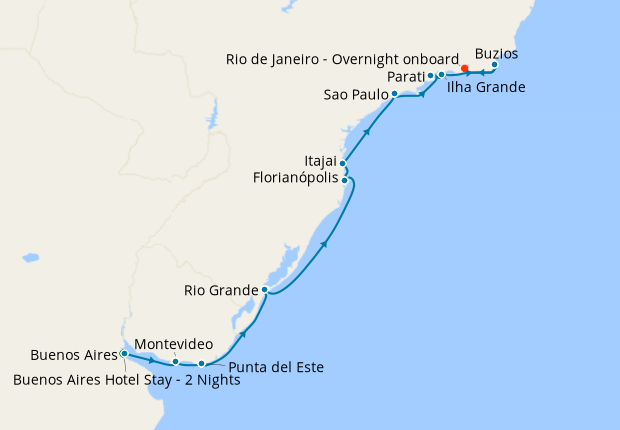 Buenos Aires Stay with Bossa Nova Reverie from Buenos Aires to Rio for 16 nights with Oceania Cruises on Oceania Insignia ship.
