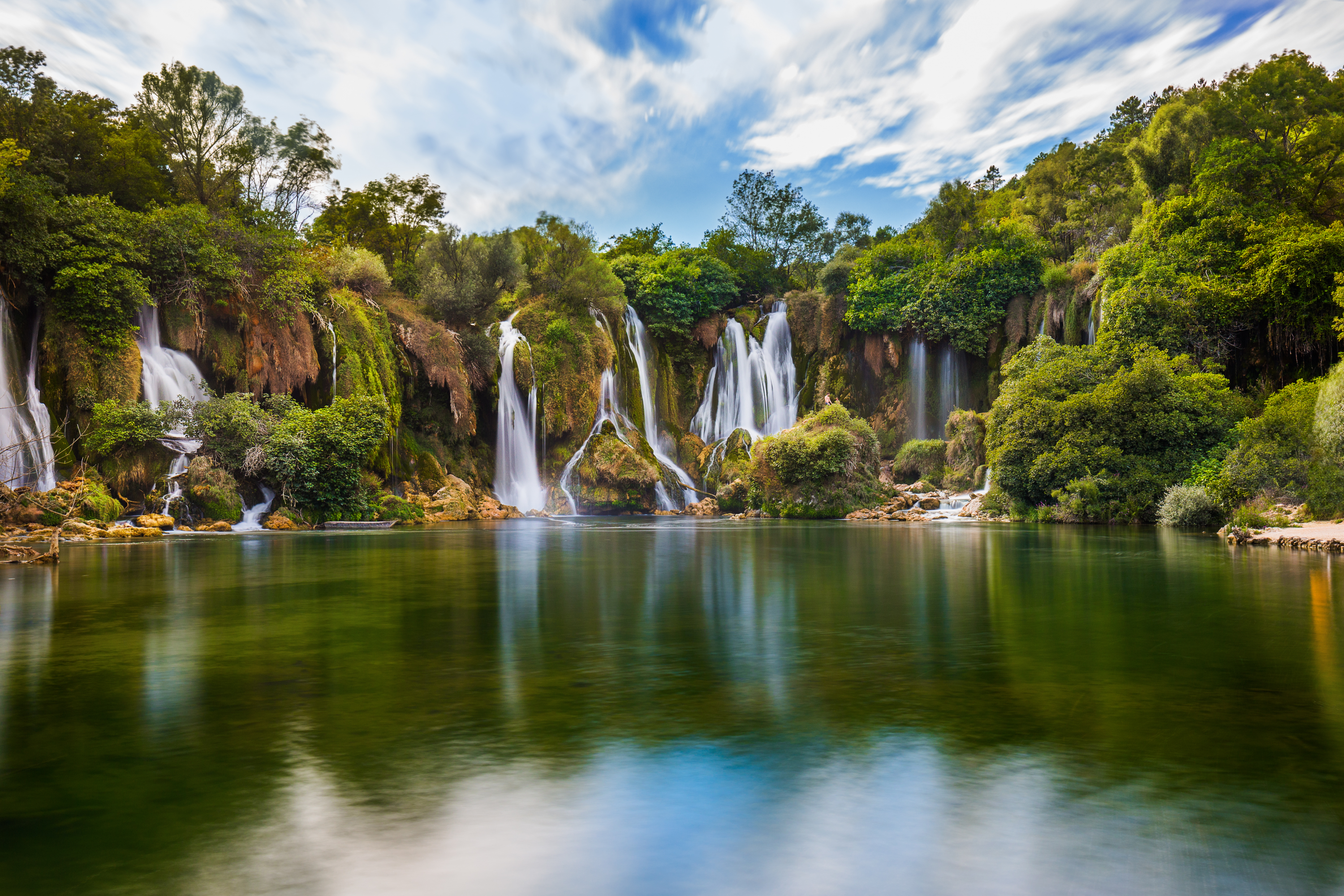 One of the most beautiful natural sites in the country, Kravice waterfalls is located on the Trebižat River. The falls stand approximately 25 metres high with 20 waterfalls cascading into the lake below. Enjoy a visit here to admire the crystal waters and lush green surroundings.