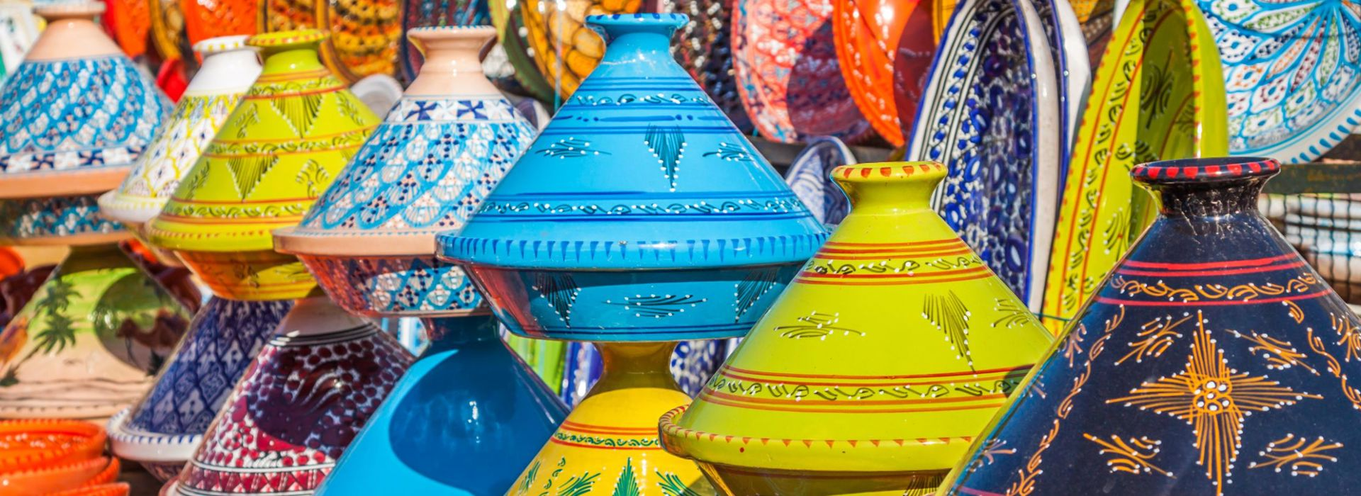 Lastly, the group will head over to one of the city’s most famous tanneries, the Chouara Tannery, which dates back over 1,00 years Specialising in the tanning and dyeing of animal hides, this tannery still uses traditional leather production methods. You can observe these multi-step techniques from the leather shops and balconies that surround it, watching as strips of leather are dyed in large, colourful mosaic vats (be prepared for a strong smell – some of the shops offer sprigs of mint or mint sweets to help mask it). You’ll also see a nearby ceramics factory and experience a glimpse into the time-honoured processes used by potters today.