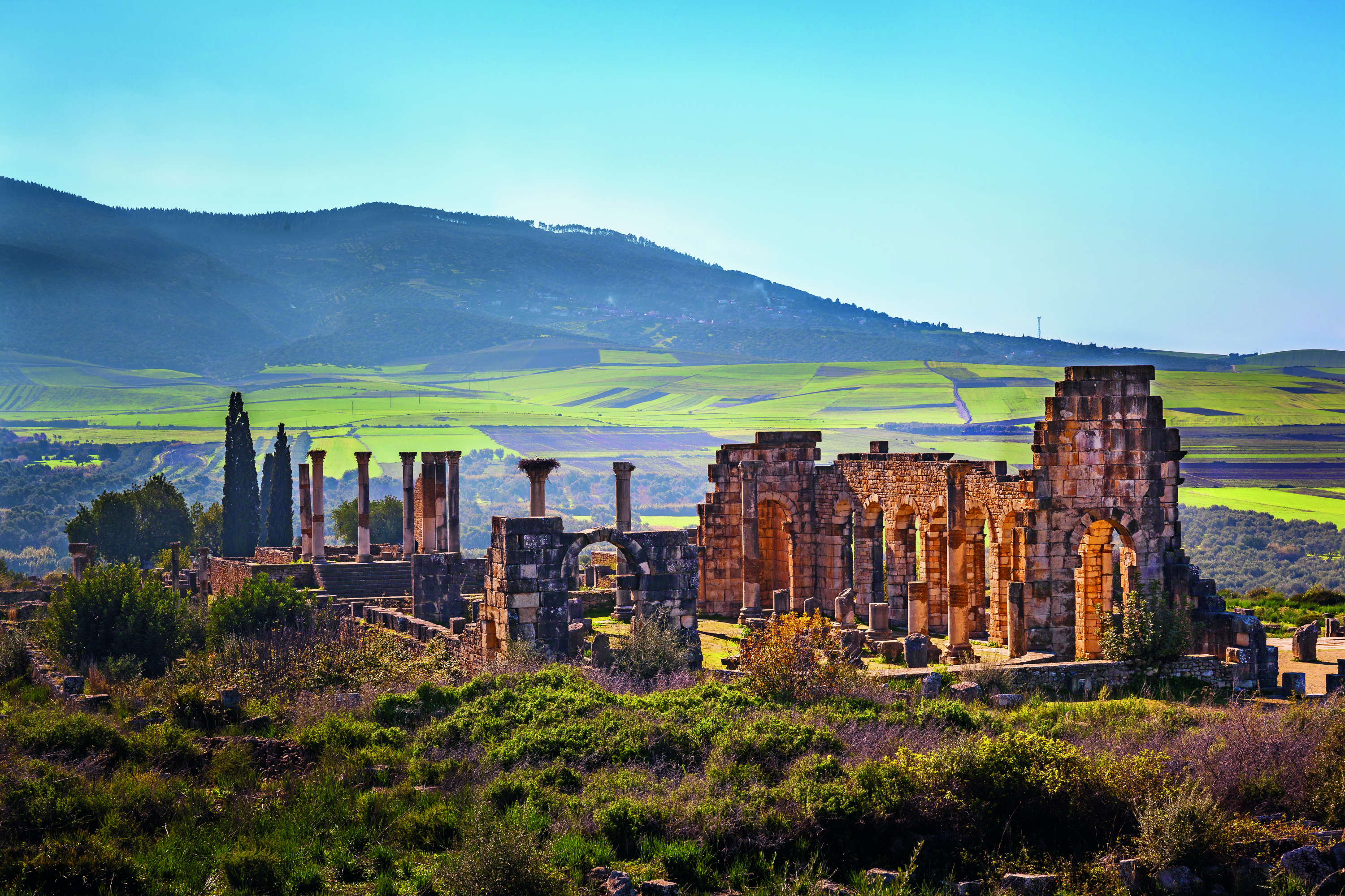 Volubilis, Meknes & Fez - After breakfast, we drive through fertile farmland and olive groves up into the hills. As we descend, the spectacular Roman ruins of Volubilis is laid out before us – the best-preserved Roman ruins in Morocco and a UNESCO World Heritage site. We step back through 2,000 years of history as we explore Volubilis with our local guide.