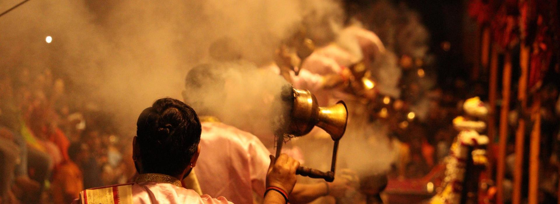 • Included Ganges cruise and tour of Varanasi - Wake up in Varanasi and make your way to the banks of the Ganges for a cruise by the ghats. Here, under the rising sun, you’ll experience this sacred river and its idyllic surrounding landscapes at their most serene. Pass the city’s riverside ghats, which number 84 in total, and learn about their use in religious ceremonies. As the city rises from its sleep, you’ll enjoy a snapshot of life in Varanasi. Return to the hotel for a late breakfast and a few hours to relax before heading back into the heart of the city. Begin at the Benaras Hindu Campus, one of India’s finest universities. This grand building, founded in 1916 by Annie Besant, a key proponent for Indian independence, has since become a major research centre. Continue to Shri Viswanath Mandir, a major temple and shrine for Indian Hindus, where you’ll learn more about the religious history and the faiths that coexist in Varanasi. Your final stop, the Sankat Mochan Temple, worships the monkey god, Hanuman, and showcases Uttar Pradesh’s traditional Hindu architecture. Enjoy the afternoon at leisure and, settle in for dinner at the hotel this evening. For further insight into the Hindu traditions of Varanasi, join an optional evening Varanasi cycle of life night walking tour alongside an expert local guide who will explain the Hindi beliefs around life and death. This tour will take you around the ghats, that lead down to the mighty Ganges. Often used for funeral rites and processions, these ceremonial staircases are sacred to the city’s Hindu population, and you’ll learn about their importance as you go.