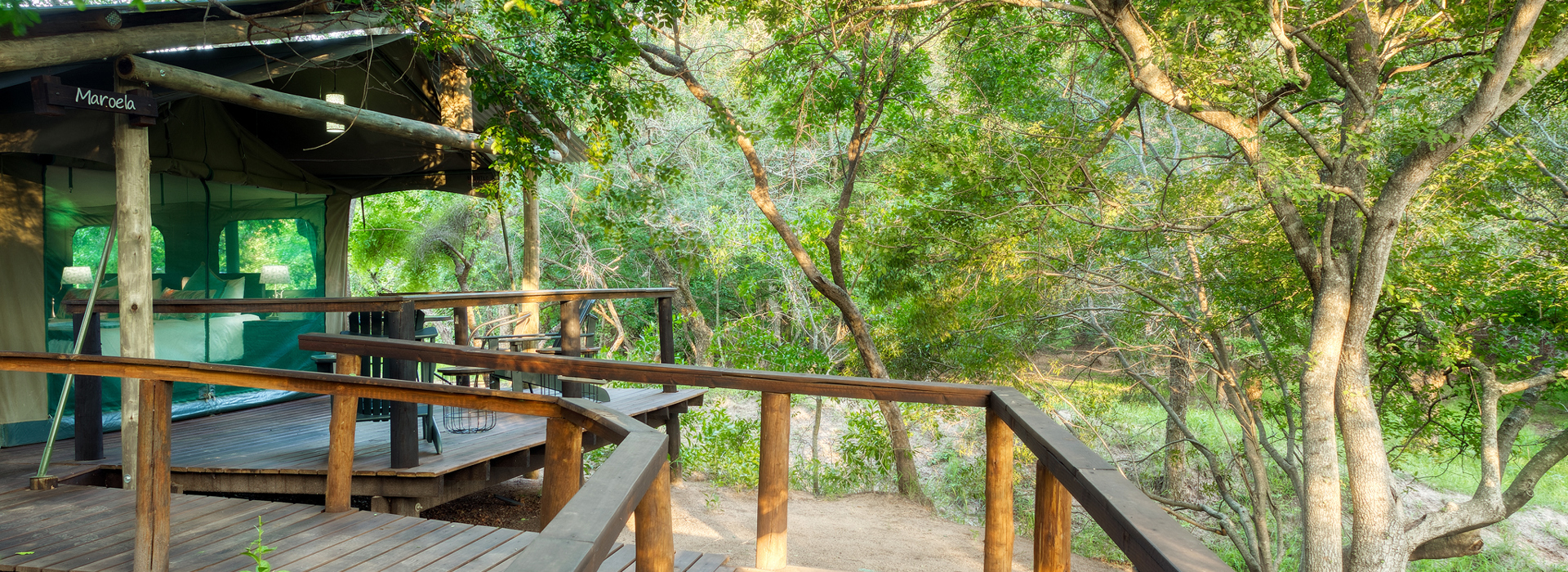 Each spacious, en-suite tent opens onto a private deck overlooking the wilderness, where zebra, nyala and warthog often wander past. Evenings bring relaxed dining and starlit skies over the African plains.