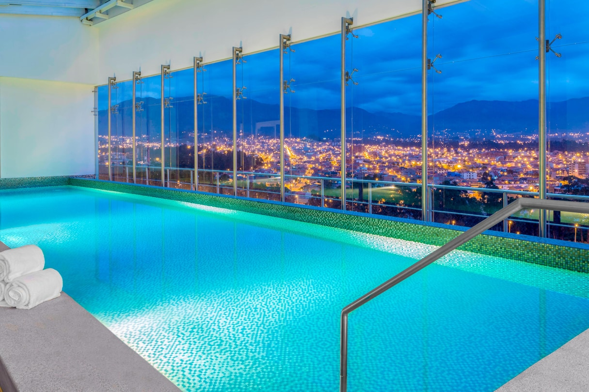 Go Quito is a new 5* hotel centrally located in Quito. During downtime, you can take a dip in the indoor swimming pool, enjoy a treatment at the on-site spa or simply relax in the lobby bar and café. Over breakfast in the hotel's restaurant, you can enjoy 360 views of Quinto. The restaurant also offers a mouthwatering menu of Mediterranean and Ecuadorian-style meals for lunch and dinner. At the end of the day, you'll drift peacefully off to sleep in your spacious rooms and wake up to offer incredible views. Every room is equipped with a TV, air-conditioning, a seating area, a mini fridge, a coffee machine, a hairdryer, safe and room service is also available.