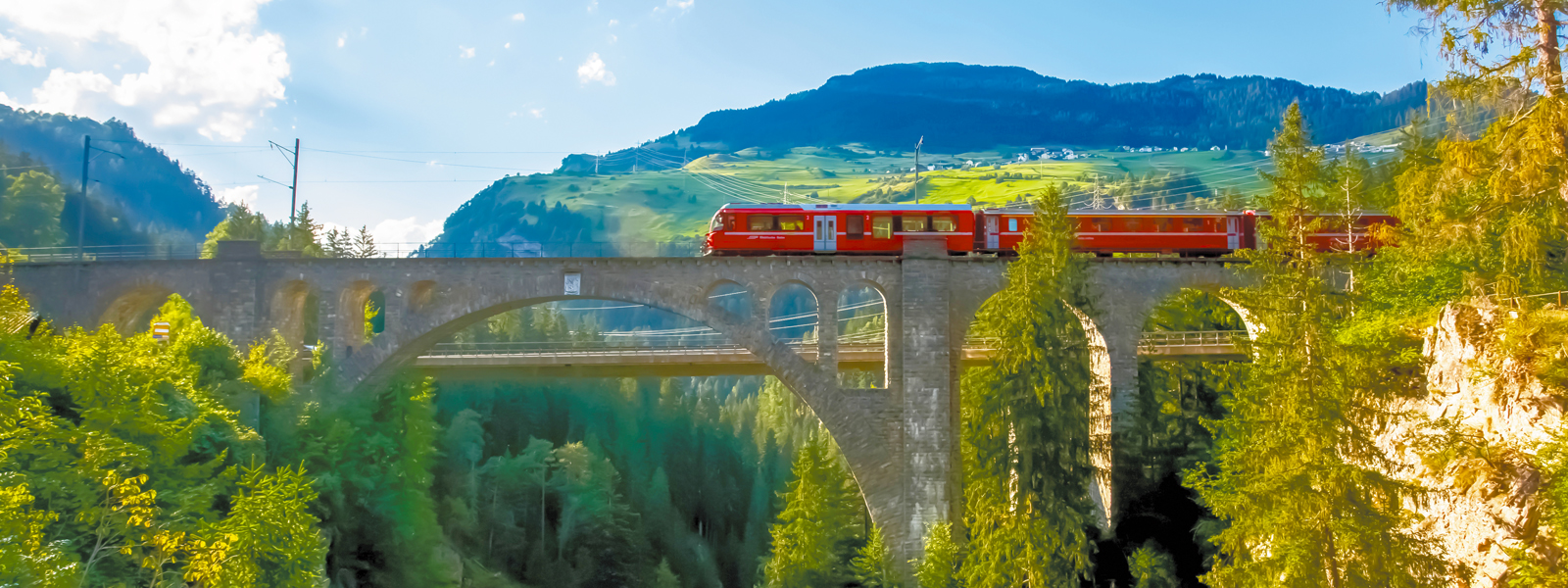 • Experience one of the world’s most spectacular rail journeys as the Bernina Express travels from Chur to Tirano. Glide through dramatic Alpine landscapes, soaring viaducts, and snow-capped mountain passes, enjoying panoramic views as the train descends from Switzerland into Italy on this unforgettable scenic adventure.