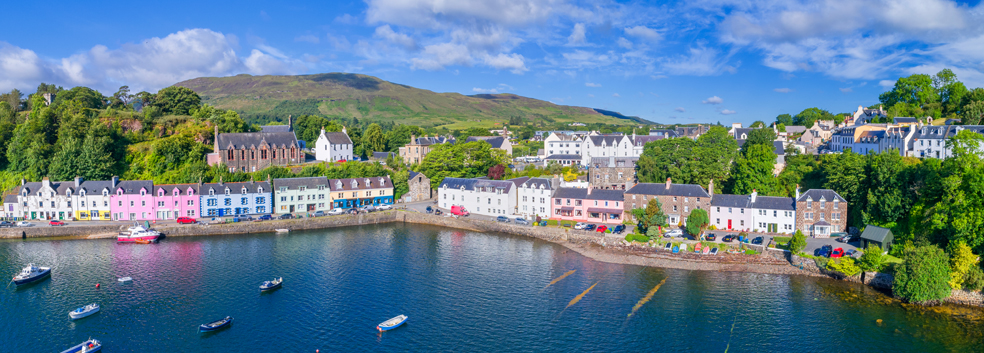 • This morning, we tour the enchanting Isle of Skye, admiring the landscapes on the way to the island’s lovely capital of Portree. Enjoy a local treat in one of the cafés, browse the little gift and book shops or simply soak up the scenes of the most iconic spot on the island, where the pretty natural harbour is fringed by multi-coloured buildings and striking cliffs. We then head northwards to the vast region of Wester Ross, journeying along the shores of Loch Maree, regarded as one of Scotland’s bonniest lochs and filled with mystical wooded islands that support many rare species of plant and birds. Our next stop is the fishing town of Ullapool, a top geological hotspot where significant discoveries were made about plate tectonics in the Victorian era. Nestled on the otherworldly shores of Lochbroom, there are lots of leisurely walking paths on offer plus a lovely art gallery showcasing local works and an informative museum with storied artefacts and collections on display. Finally, we make our way to our overnight hotel in Ullapool, where there’s free time to breathe in the fresh Highland air, marvel at the tranquil views and discover the quaint harbour.