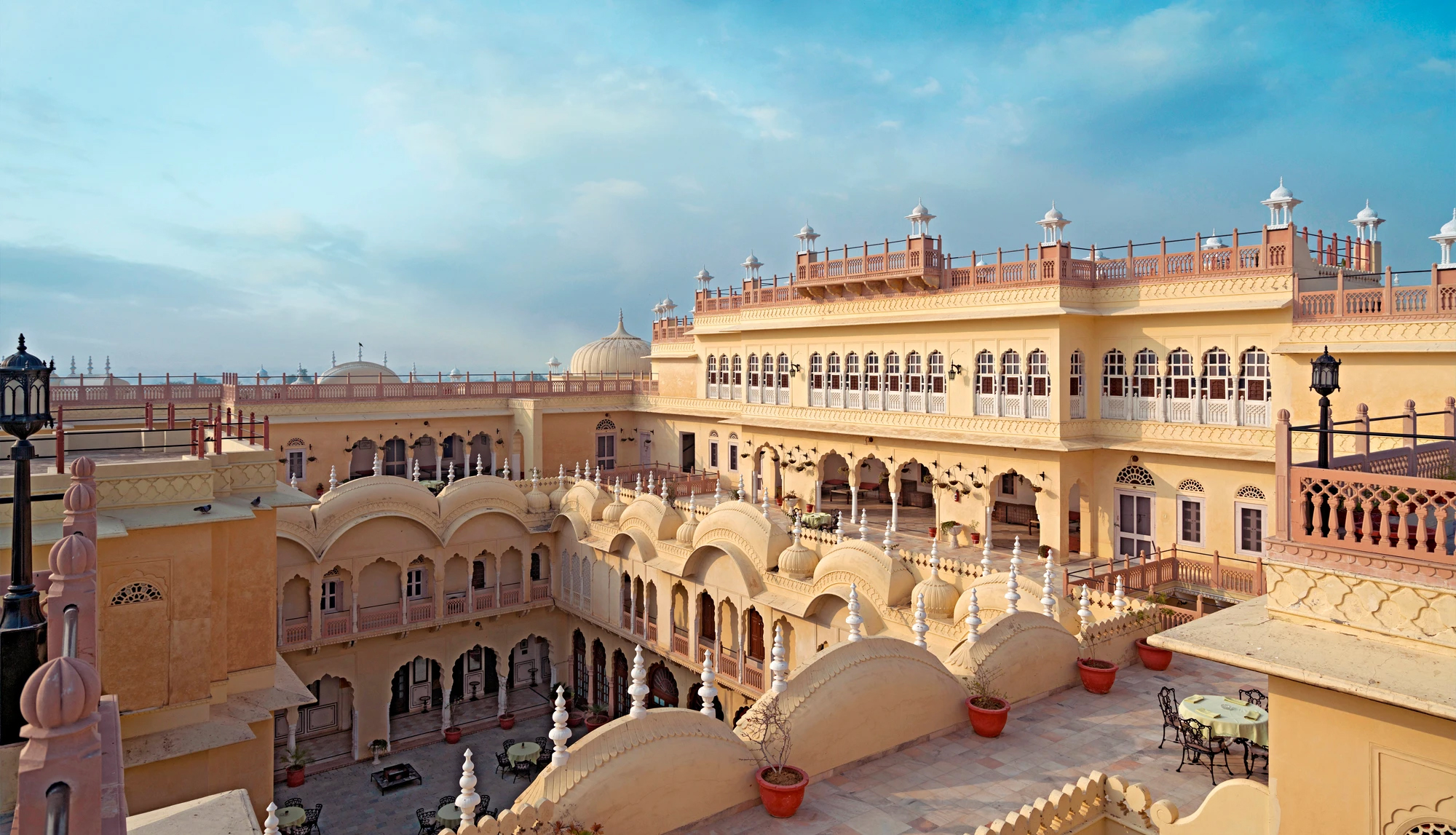 Once the home of the Alsisar family - a prominent family in India with a long history - this heritage hotel is full of history with incredible architecture and luxurious interiors, Rajasthani motifs and antique furniture. As well as the beautiful frescoes and grand courtyards, the hotel also features an outdoor swimming pool, a coffee shop and a lounge. The restaurant offers an array of local and international dishes and after dinner, why not head to the roof seating area to toast another thrilling day exploring with newfound friends? The heritage rooms feature all the charm of yesteryear with modern amenities, including air-conditioning.