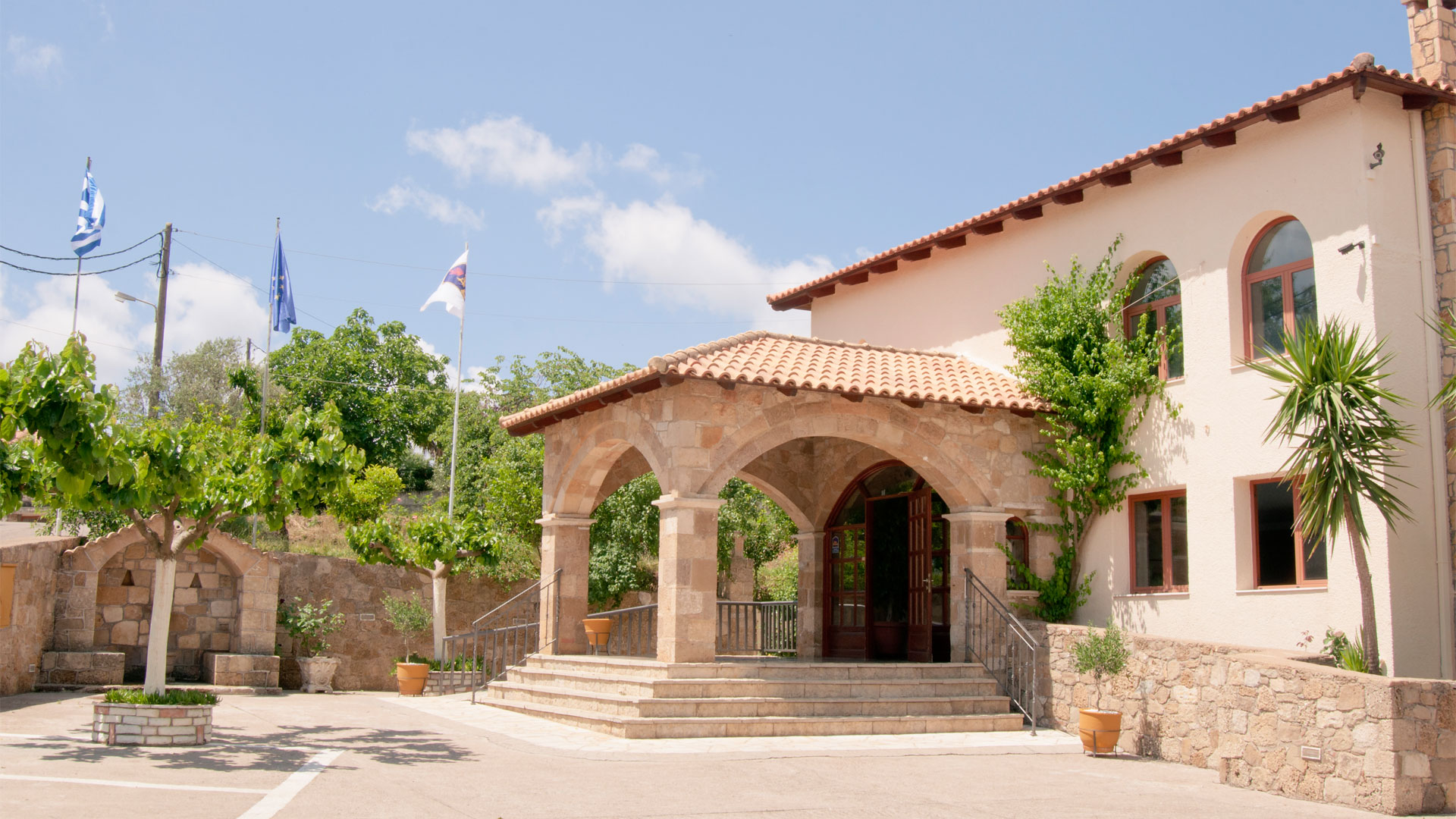 The hotel is fully air-conditioned and features low-rise buildings set in lovely gardens, with an open-air pool (with pool bar) and an excellent restaurant where we take dinner. In summer, the tables are spread out beneath the olive trees, for a truly authentic Greek experience!